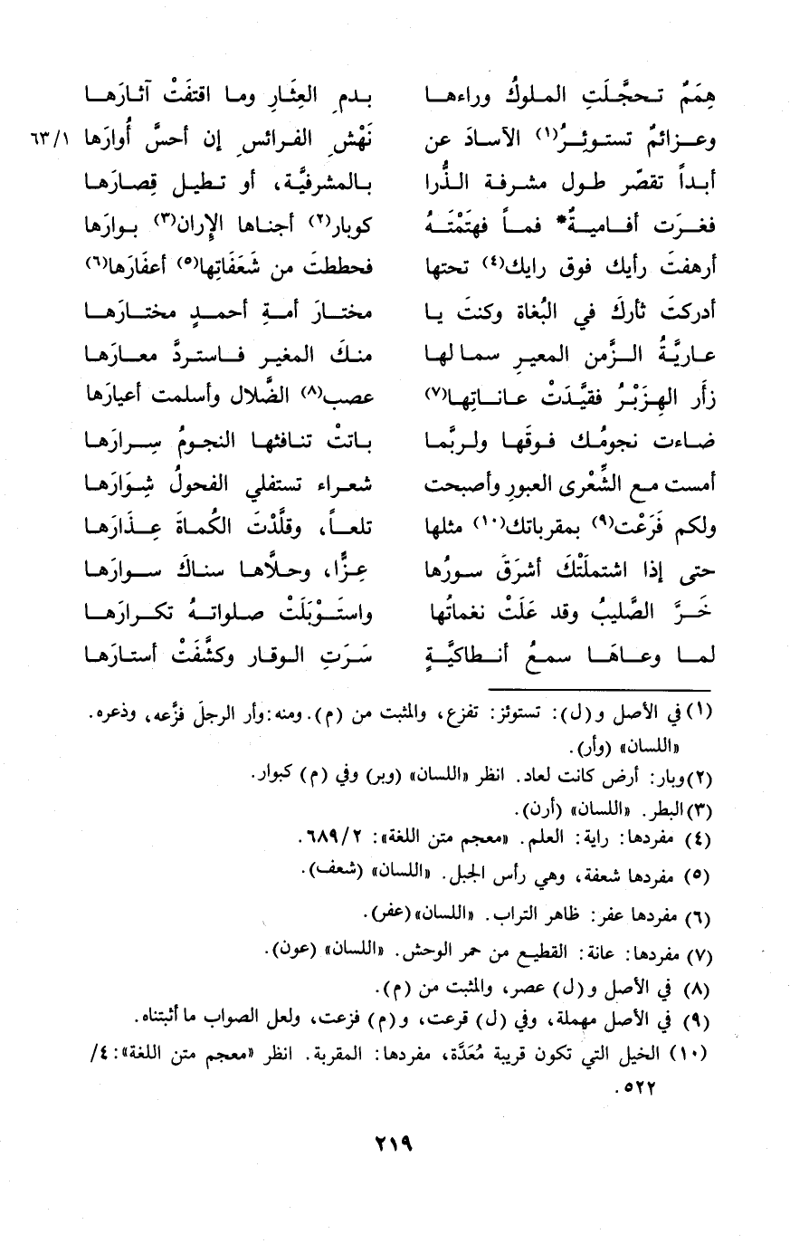 (همم تحجلت الْمُلُوك وَرَاءَهَا ... بِدَم العثار وَمَا اقتفت آثارها)