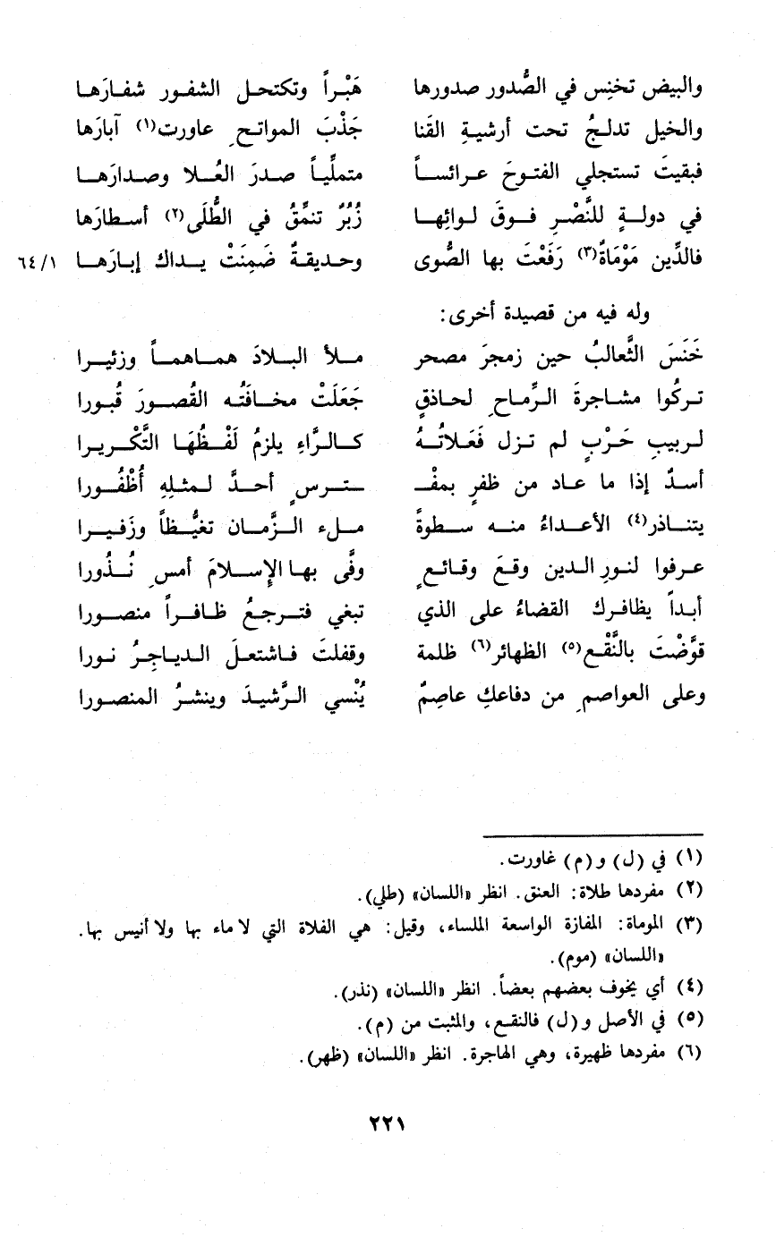 (وعَلى العواصم من دفاعك عَاصِم ... ينسي الرشيد وينشر المنصورا)