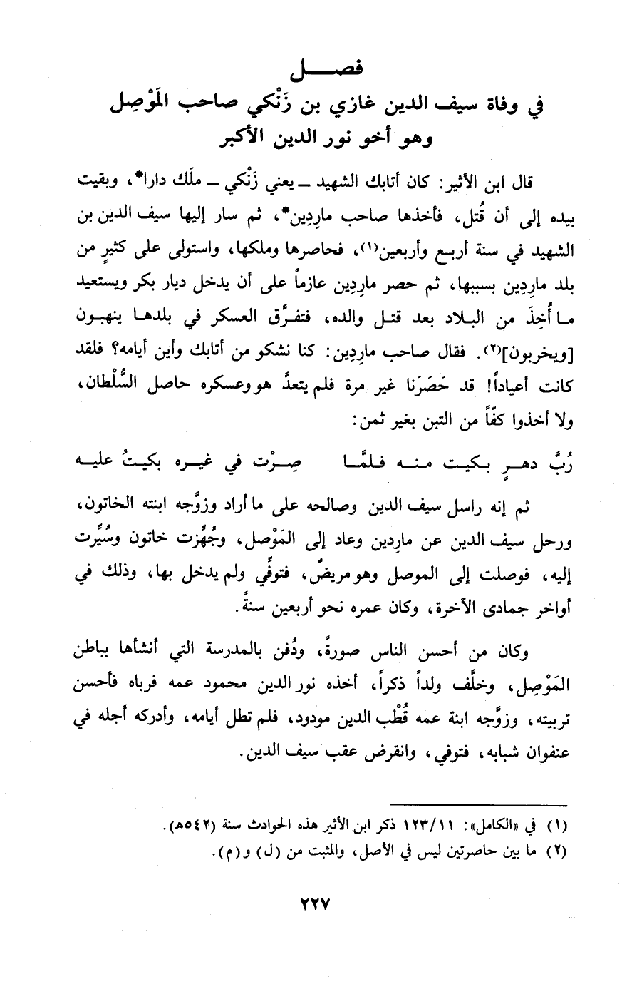 فصل فِي وَفَاة سيف الدّين غَازِي بن زنكي صَاحب الْموصل وَهُوَ أَخُو نور الدّين الْأَكْبَر