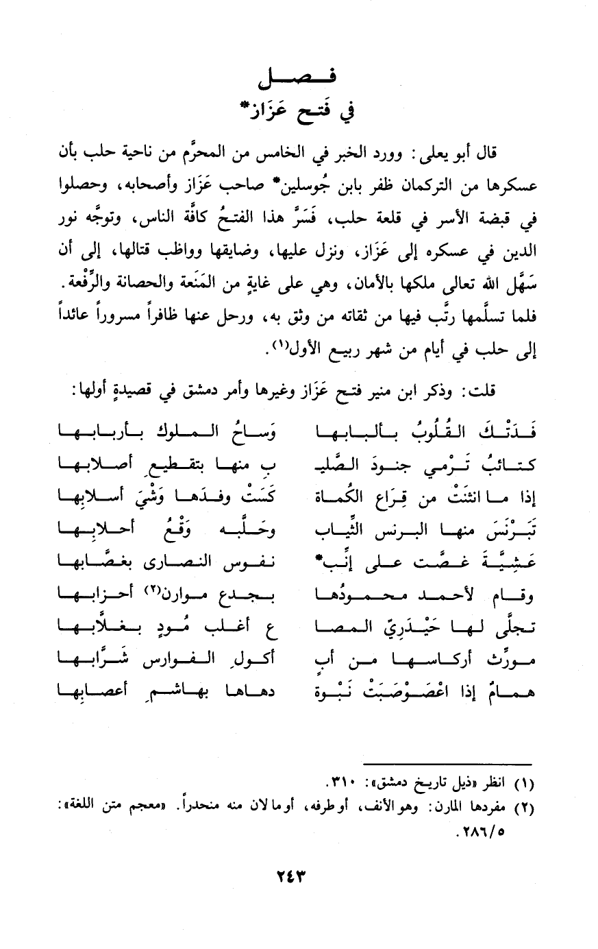 قلت وَذكر ابْن مُنِير فتح عزاز وَغَيرهَا وَأمر دمشق فِي قصيدة أَولهَا
