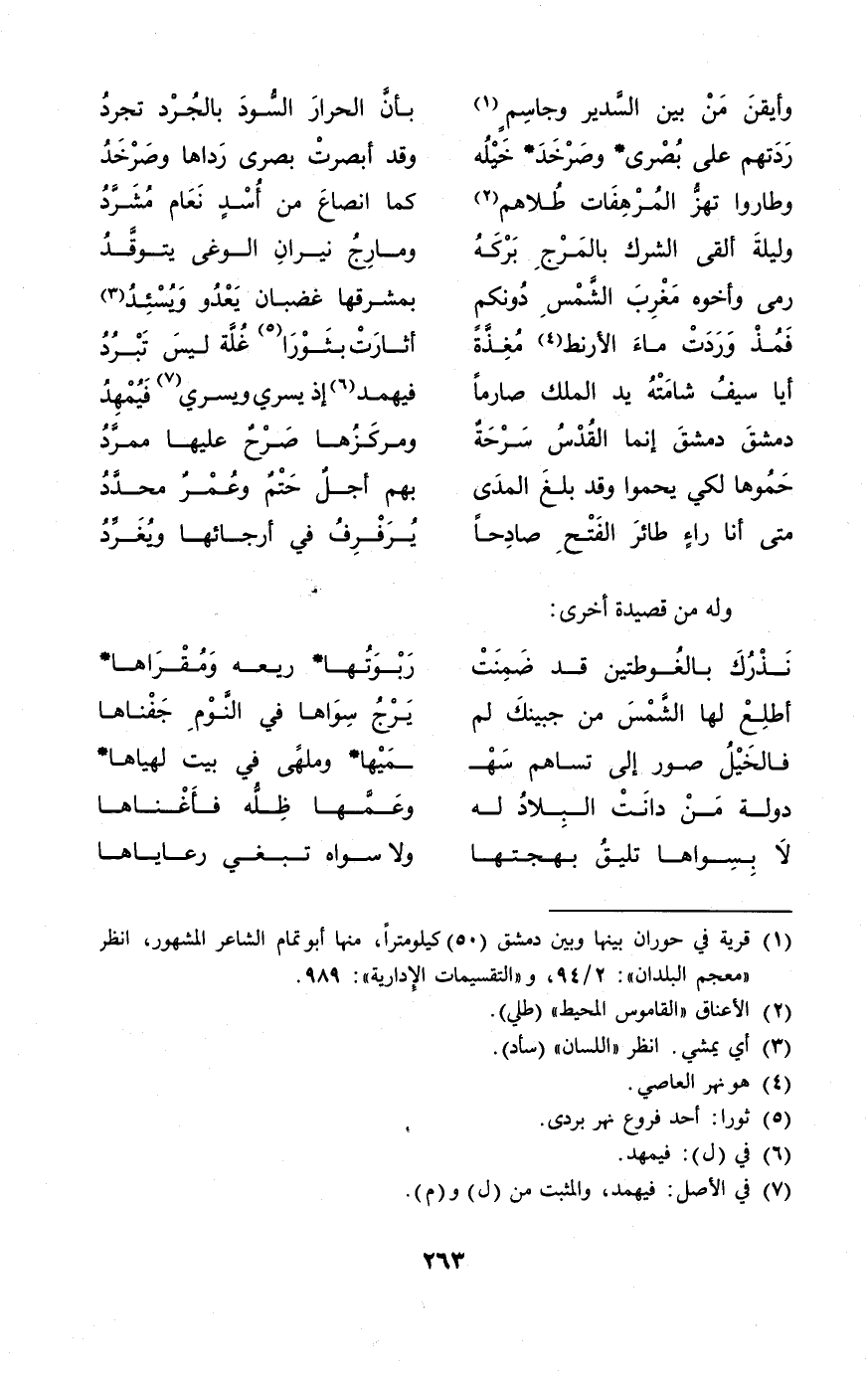 (دمشق دمشق إِنَّمَا الْقُدس سرحة ... ومركزها صرح عَلَيْهَا ممرد)