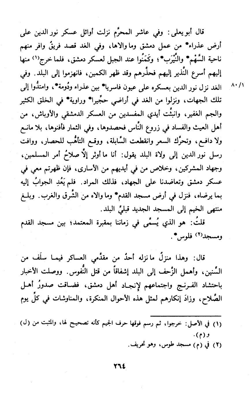 قَالَ وَهَذَا منزل مَا نزله أحد من مقدمى العساكر فِيمَا سلف من السنين وأهمل الزَّحْف إِلَى الْبَلَد إشفاقا من قتل النُّفُوس
