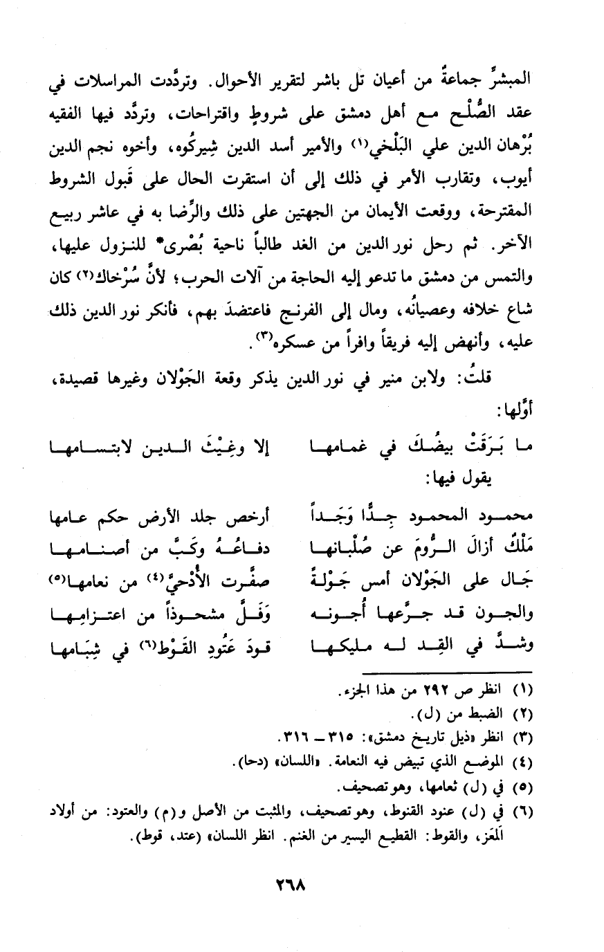 قلت وَلابْن مُنِير فِي نور الدّين يذكر وقْعَة الجولان وَغَيرهَا قصيدة أَولهَا