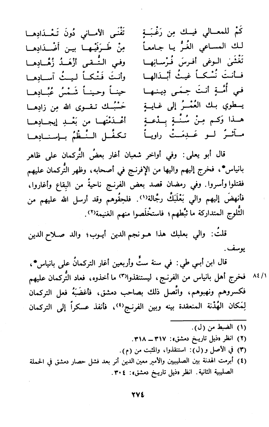 قَالَ أَبُو يعلى وَفِي أَوَاخِر شعْبَان أغار بعض التّركمان على ظَاهر بانياس فَخرج إِلَيْهِم واليها من الإفرنج فِي أَصْحَابه وَظهر التركمان عَلَيْهِم فَقتلُوا وأسروا