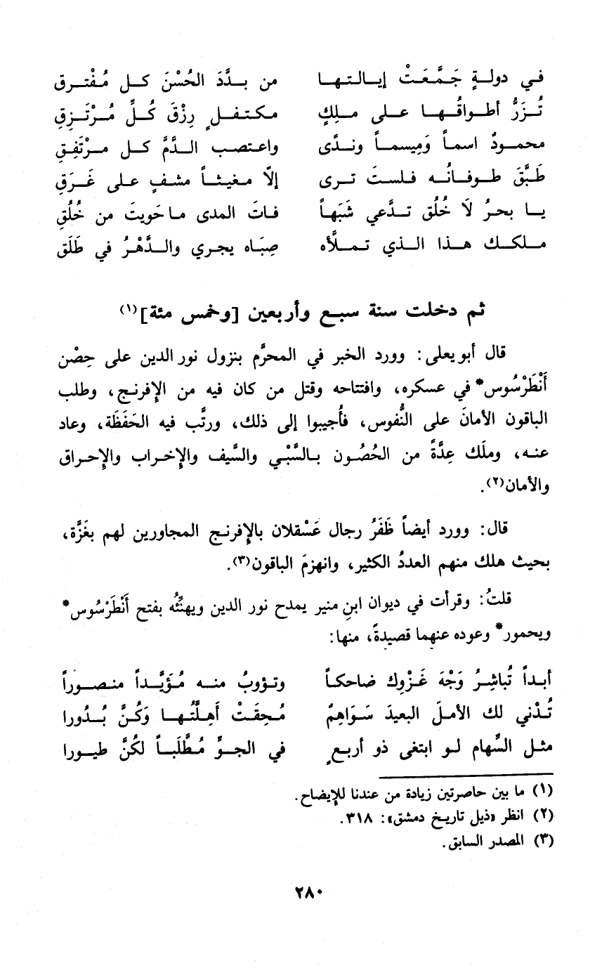 قلت وقرأت فِي ديوَان ابْن مُنِير يمدح نور الدّين ويهنئه بِفَتْح أنطرسوس ويحمور وعوْده عَنْهُمَا قصيدة مِنْهَا