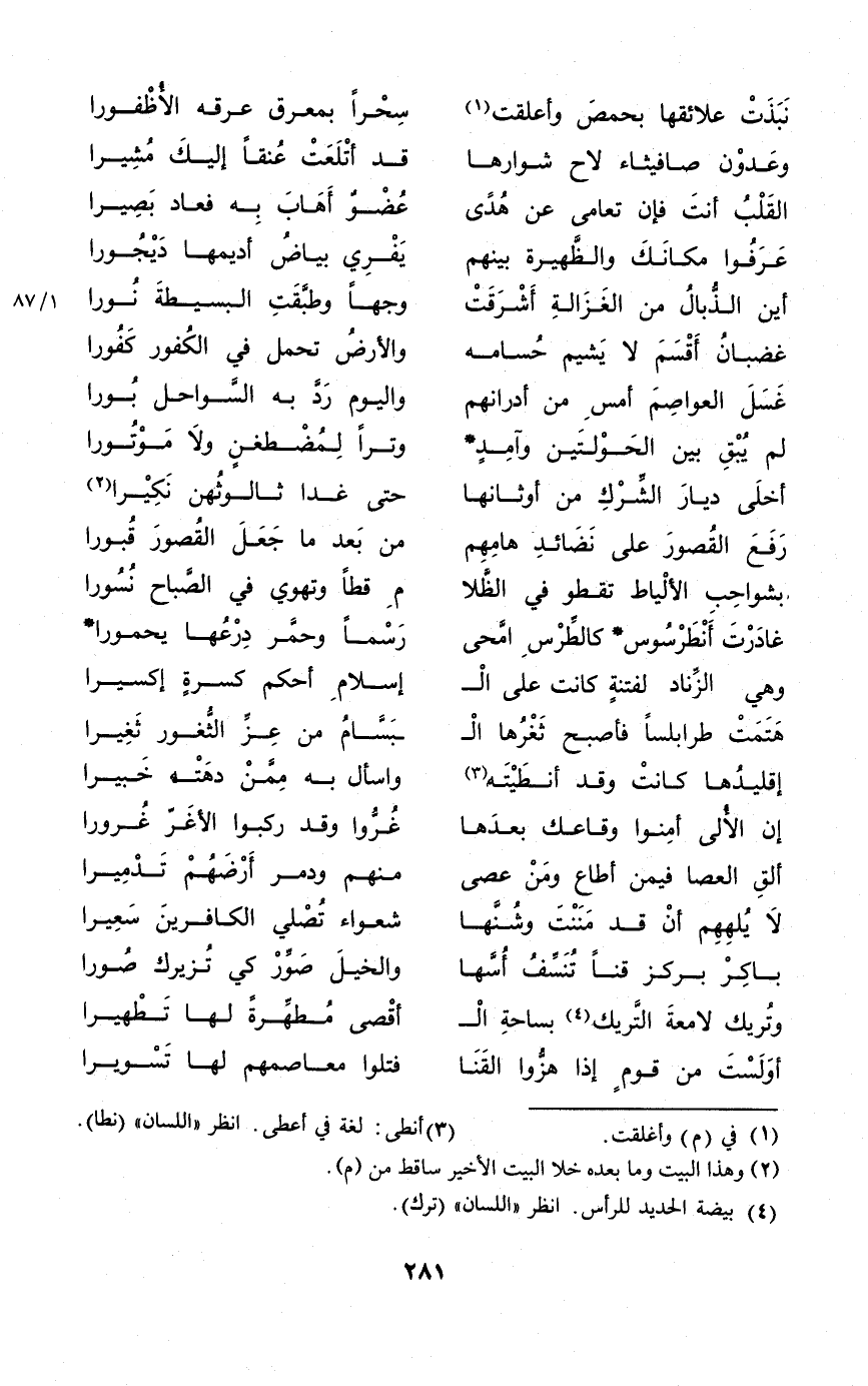 (غادرت أنطرسوس كالطرس امحى ... رسما وحمر درعها يحمورا)