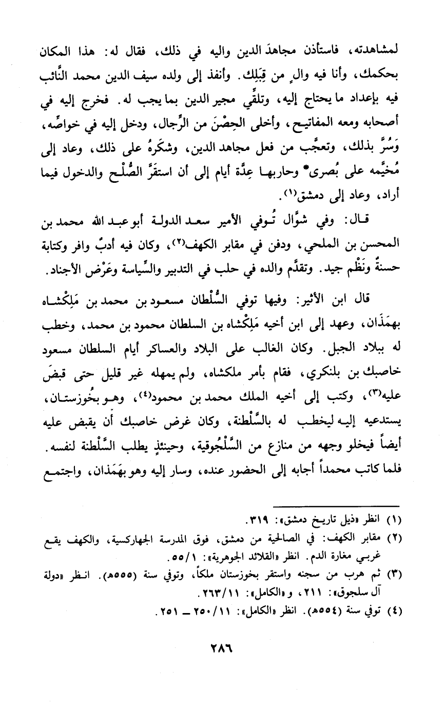 قَالَ ابْن الْأَثِير وفيهَا توفّي السُّلْطَان مَسْعُود بن مُحَمَّد بن ملكشاه بهمذان وعهد إِلَى ابْن أَخِيه ملكشاه بن السُّلْطَان مَحْمُود بن مُحَمَّد وخطب لَهُ بِبِلَاد الْجَبَل