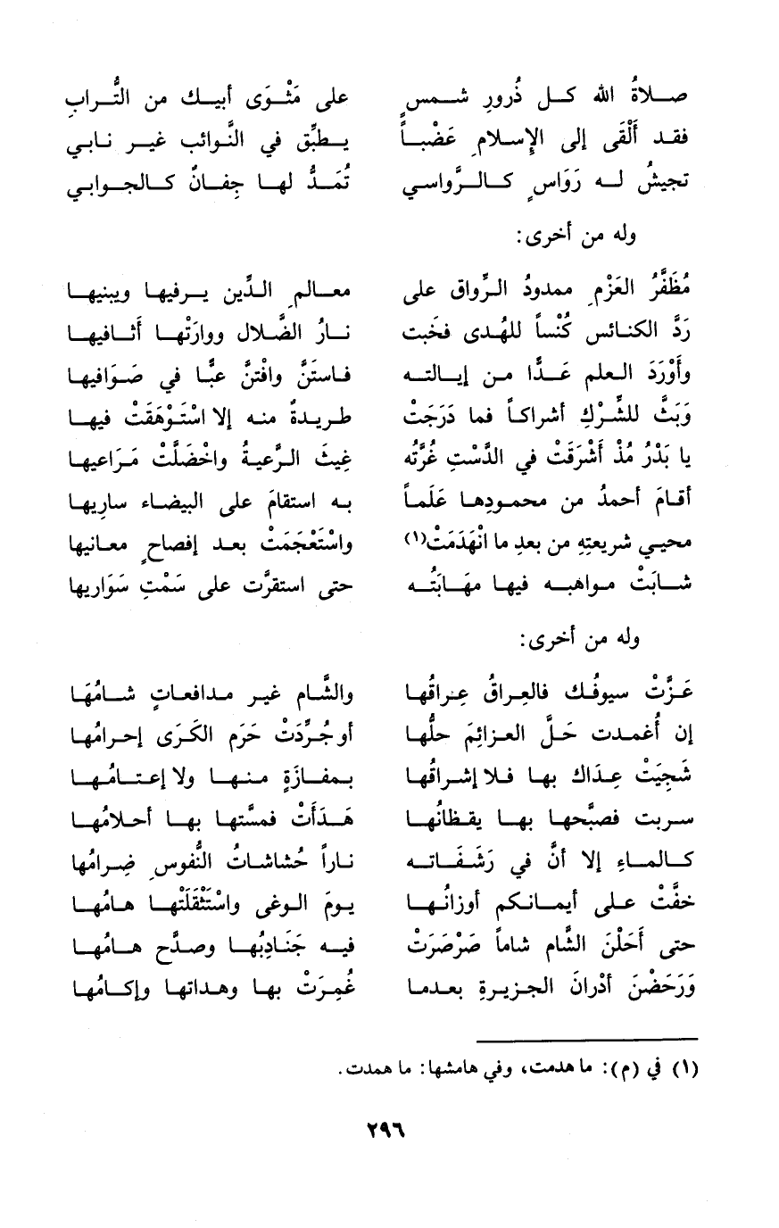 (عزت سيوفك فالعراق عراقها ... وَالشَّام غير مدافعات شامهاً)