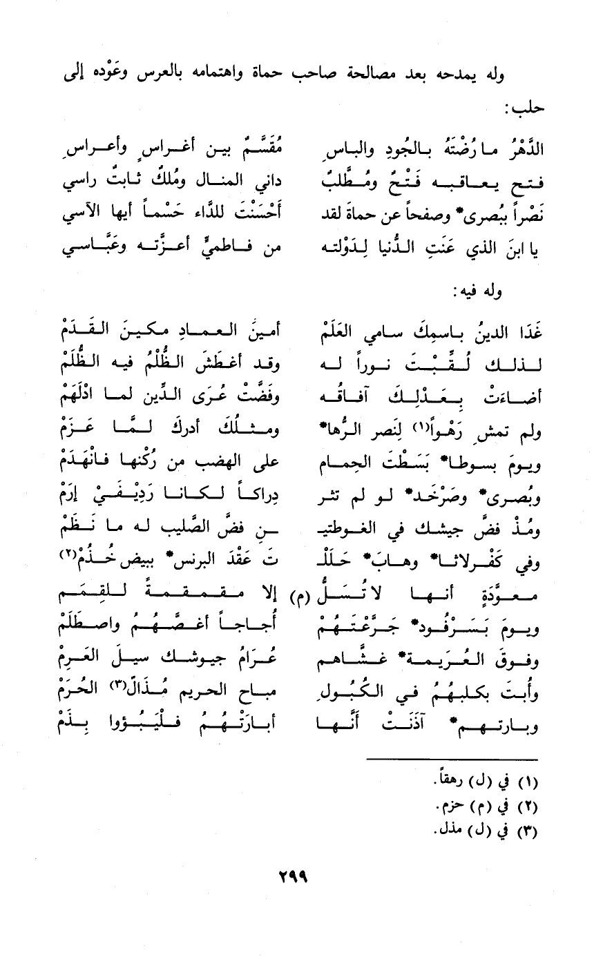 وَله يمدحه بعد مصالحة صَاحب حماة واهتمامه بالعرس وَعوده إِلَى حلب