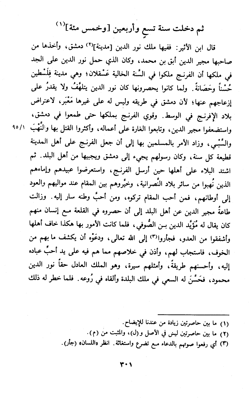 قَالَ ابْن الْأَثِير فَفِيهَا ملك نور الدّين مَدِينَة دمشق وَأَخذهَا من صَاحبهَا مجير الدّين آبق بن مُحَمَّد وَكَانَ الَّذِي حمل نور الدّين على الْجد فِي ملكهَا أَن الفرنج ملكوا فِي السّنة الخالية عسقلان وَهِي مَدِينَة فلسطين حسنا وحصانة