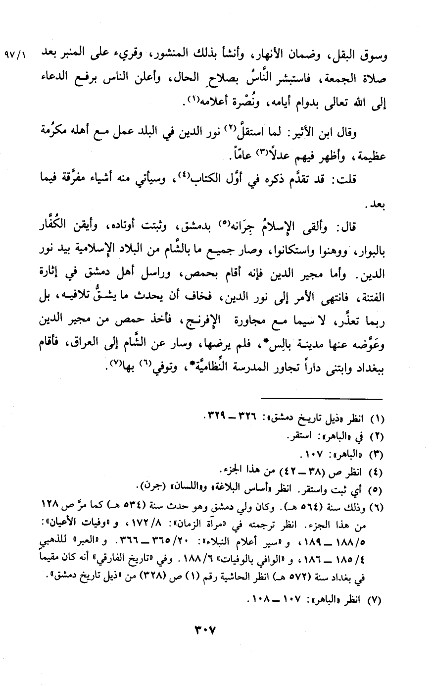 وَقَالَ ابْن الْأَثِير لما اسْتَقل نور الدّين فِي الْبَلَد عمل مَعَ أَهله مكرمَة عَظِيمَة واظهر فيهم عدلا عَاما
