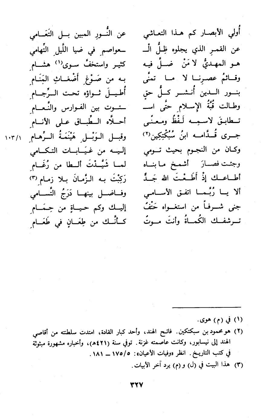 (أَلا يَا رُبمَا اتّفق الْأَسَامِي ... وفاضل بَينهَا درج التسامي)