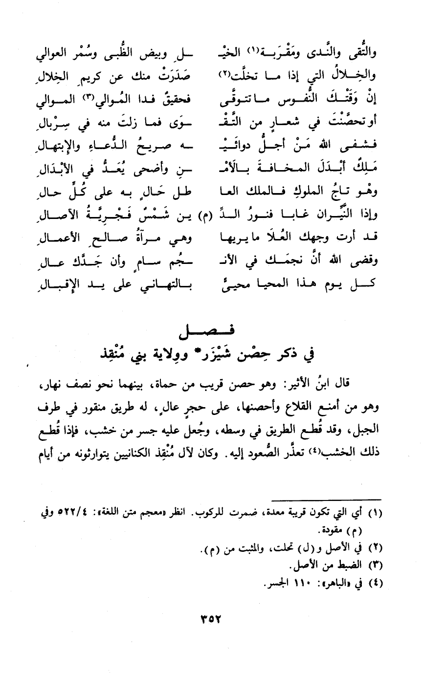 فصل فِي ذكر حصن شيزر وَولَايَة بني منقذ