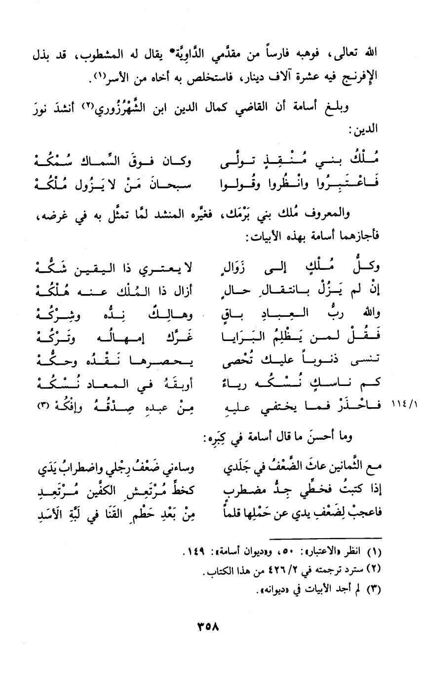 وَبلغ أُسَامَة أَن القَاضِي كَمَال الدّين ابْن الشهرزوري أنْشد نور الدّين