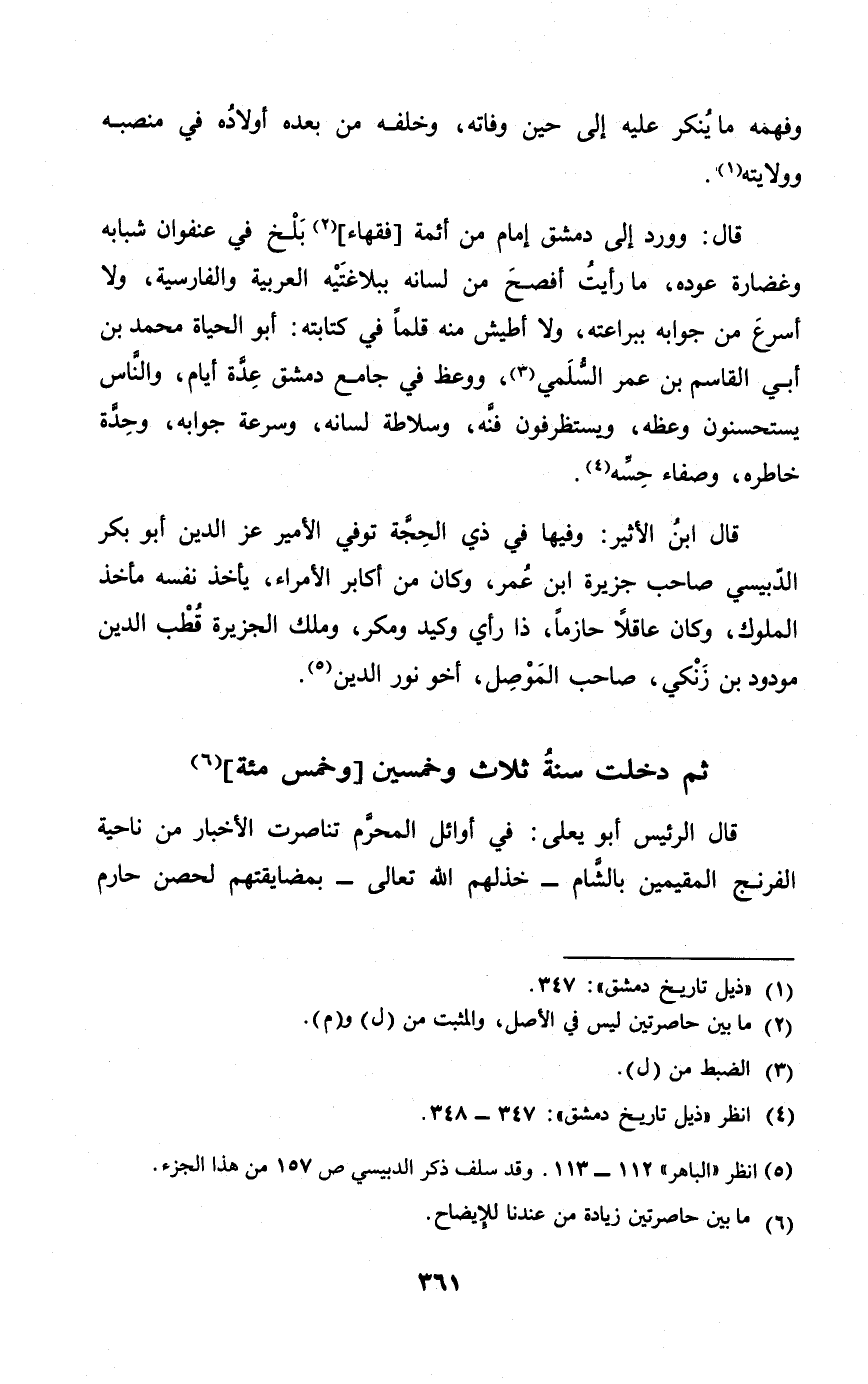 قَالَ ابْن الْأَثِير وفيهَا فِي ذِي الْحجَّة توفّي الْأَمِير عز الدّين أَبُو بكر الدبيسى صَاحب جَزِيرَة ابْن عمر وَكَانَ من أكَابِر الْأُمَرَاء ياخذ نَفسه ماخذ الْمُلُوك وَكَانَ عَاقِلا حازما ذَا رَأْي وَكيد ومكر وَملك الجزيرة قطب الدّين مودود بن زنكي صَاحب الْموصل أَخُو نور الدّين