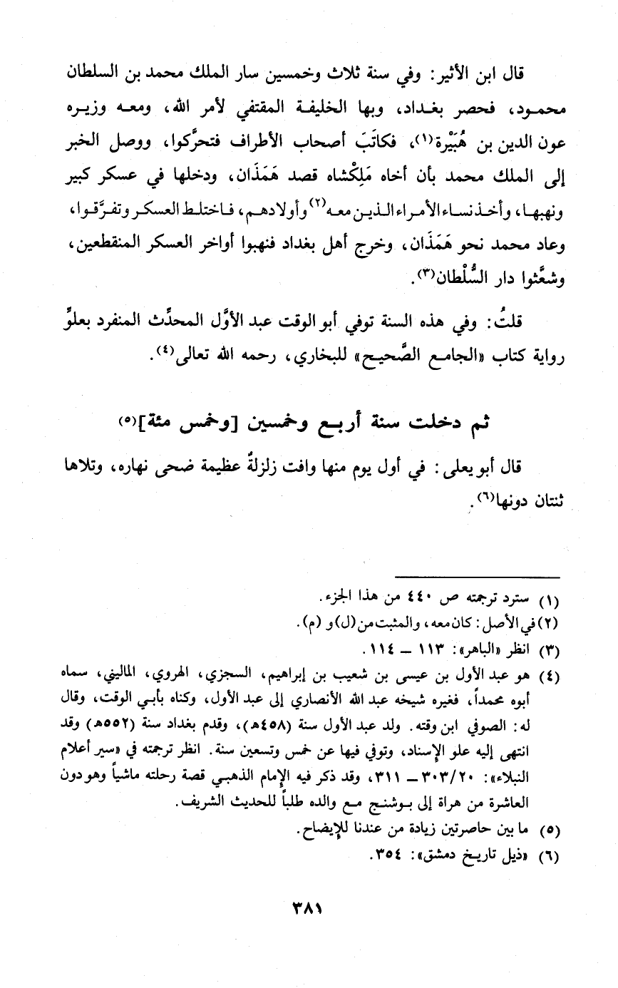 قلت وَفِي هَذِه السّنة توفى أَبُو الْوَقْت عبد الأول الْمُحدث الْمُنْفَرد بعلو رِوَايَة = كتاب الْجَامِع الصَّحِيح = للْبُخَارِيّ رَحمَه الله تَعَالَى