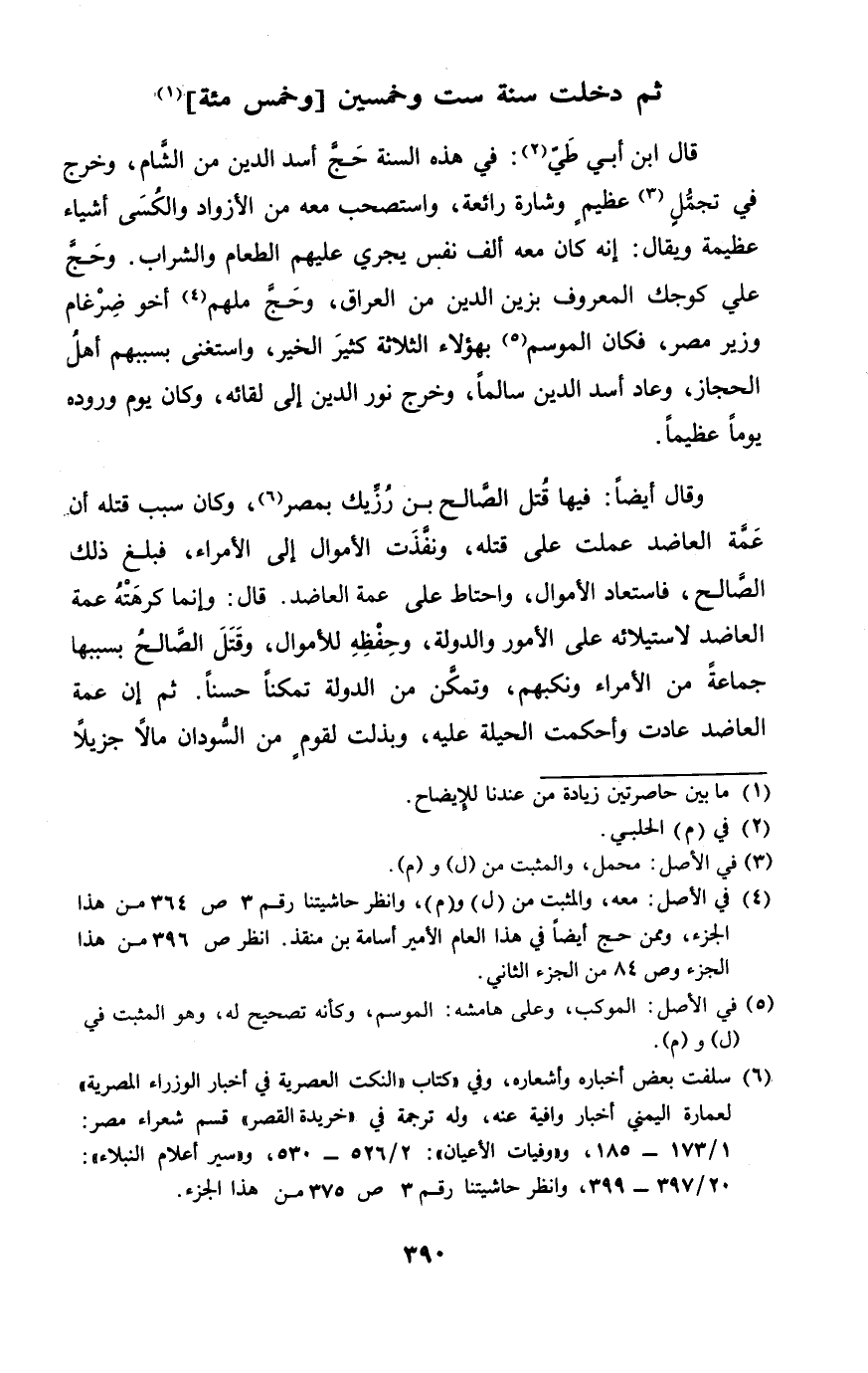 وَقَالَ أَيْضا فِيهَا قتل الصَّالح بن رزيك بِمصْر وَكَانَ سَبَب قَتله إِن عمَّة العاضد عملت على قَتله ونفذت الْأَمْوَال إِلَى الْأُمَرَاء فَبلغ ذَلِك الصَّالح فاستعاد الْأَمْوَال واحتاط على عمَّة العاضد