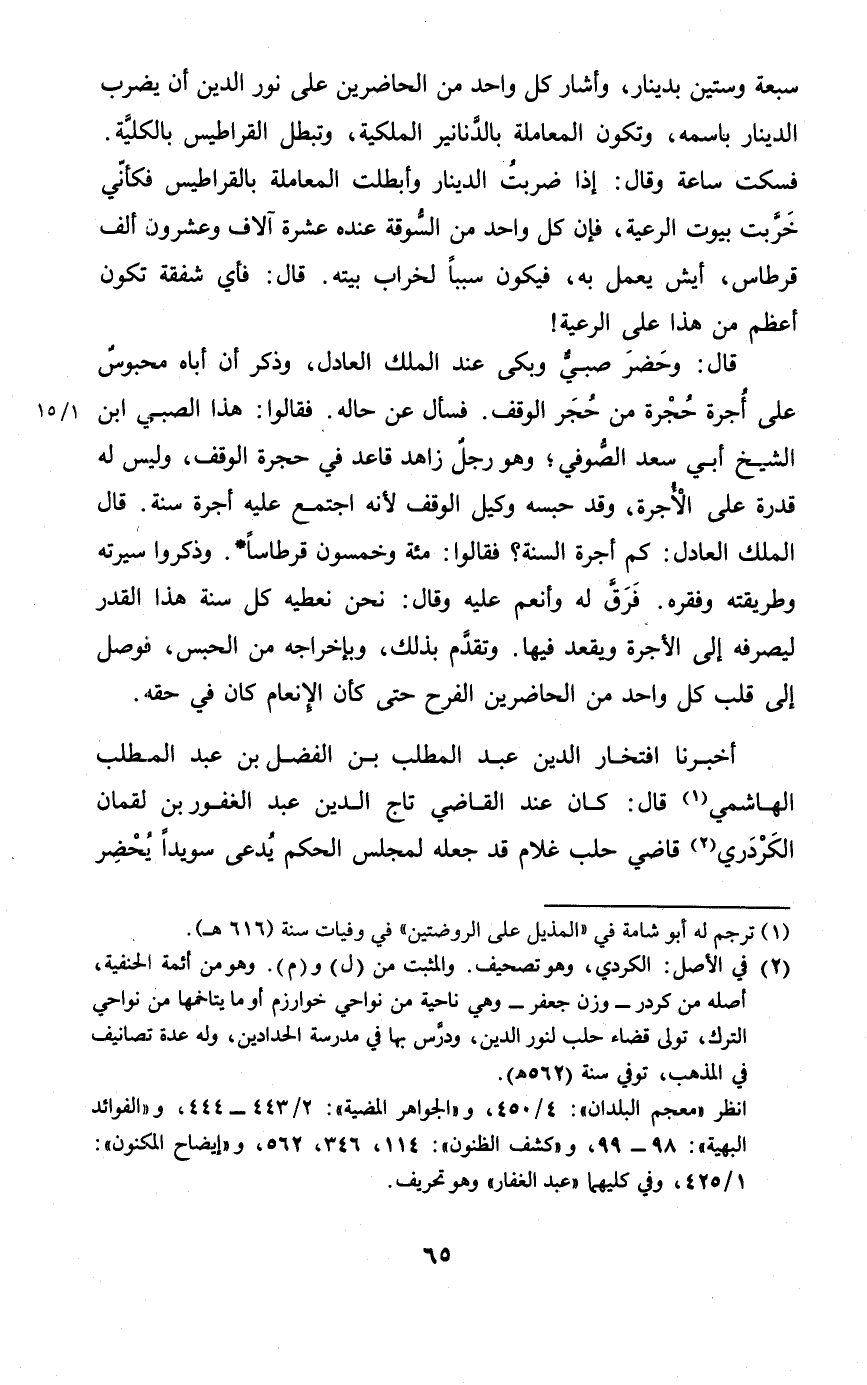 سَبْعَة وَسِتِّينَ بِدِينَار وَأَشَارَ كل وَاحِد من الْحَاضِرين على نور الدّين أَن يضْرب الدِّينَار باسمه وَتَكون الْمُعَامَلَة بِالدَّنَانِيرِ الملكية وَتبطل الْقَرَاطِيس بِالْكُلِّيَّةِ