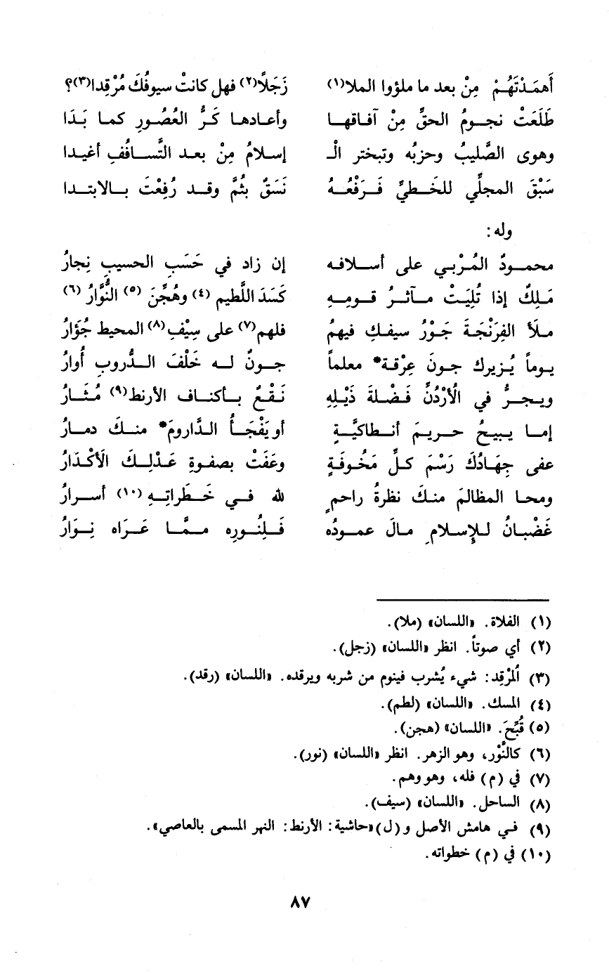 (أهمدتهم من بعد مَا ملؤوا الملا ... زجلا فَهَل كَانَت سيوفك مرقدا)