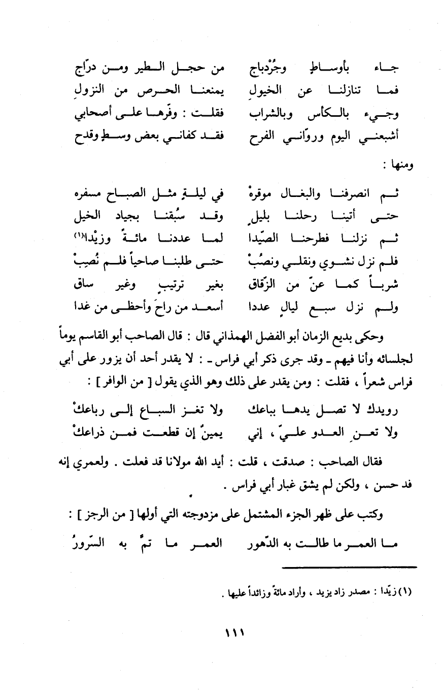 (ثمَّ نزلنَا فطرحنا الصيدا ... لما عددنا مائَة وزيدا)