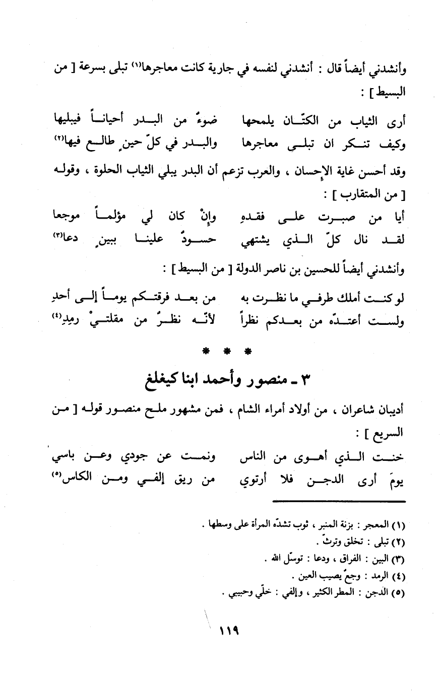 أديبان شاعران من أَوْلَاد أُمَرَاء الشَّام فَمن مَشْهُور ملح مَنْصُور قَوْله