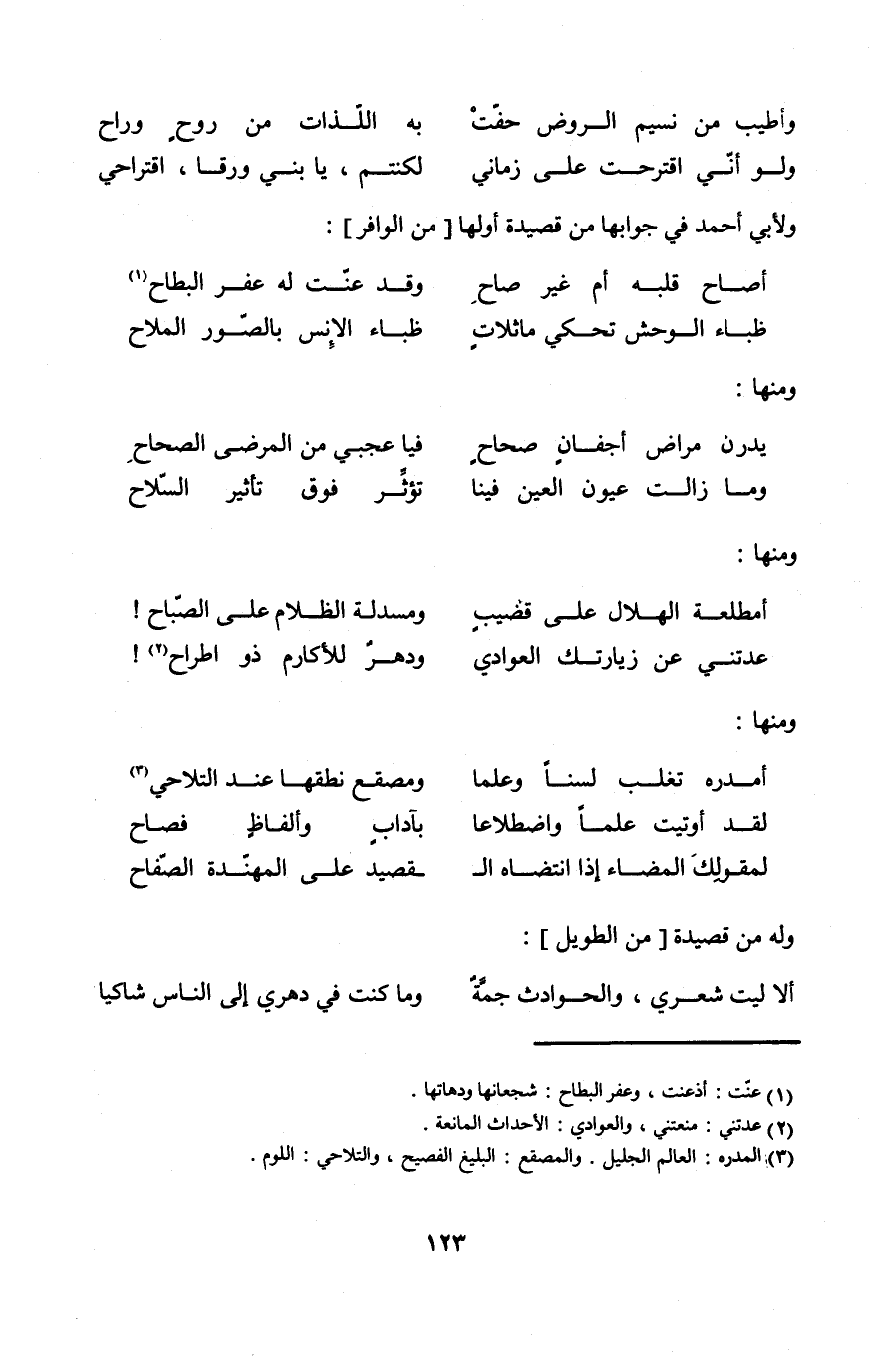 (وَلَو أَنِّي اقترحت على زماني ... لكنتم يَا بني وَرقا اقتراحي) // من الوافر //