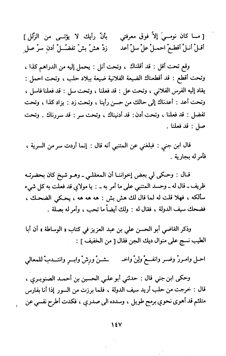 قَالَ ابْن جني فبلغني عَن المتنبي أَنه قَالَ إِنَّمَا أردْت سر من السّريَّة فَأمر لَهُ بِجَارِيَة