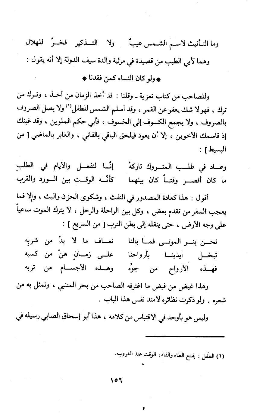 (وَمَا التَّأْنِيث لاسم الشَّمْس عيب ... وَلَا التَّذْكِير فَخر للهلال) // من الوافر //