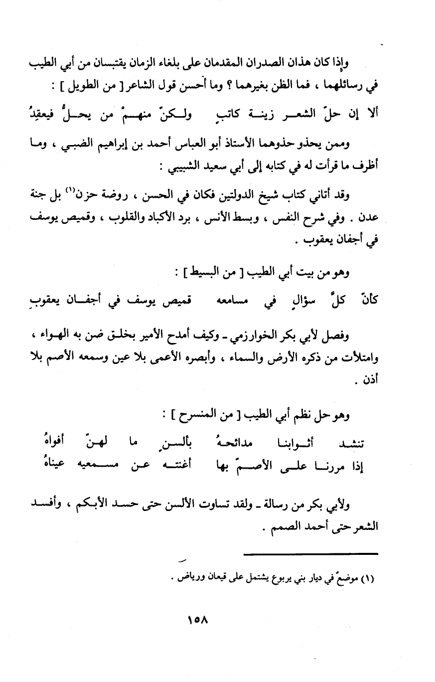 وَإِذا كَانَ هَذَانِ الصدران المقدمان على بلغاء الزَّمَان يقتبسان من أبي الطّيب فِي رسائلهما فَمَا الظَّن بِغَيْرِهِمَا وَمَا أحسن قَول الشَّاعِر