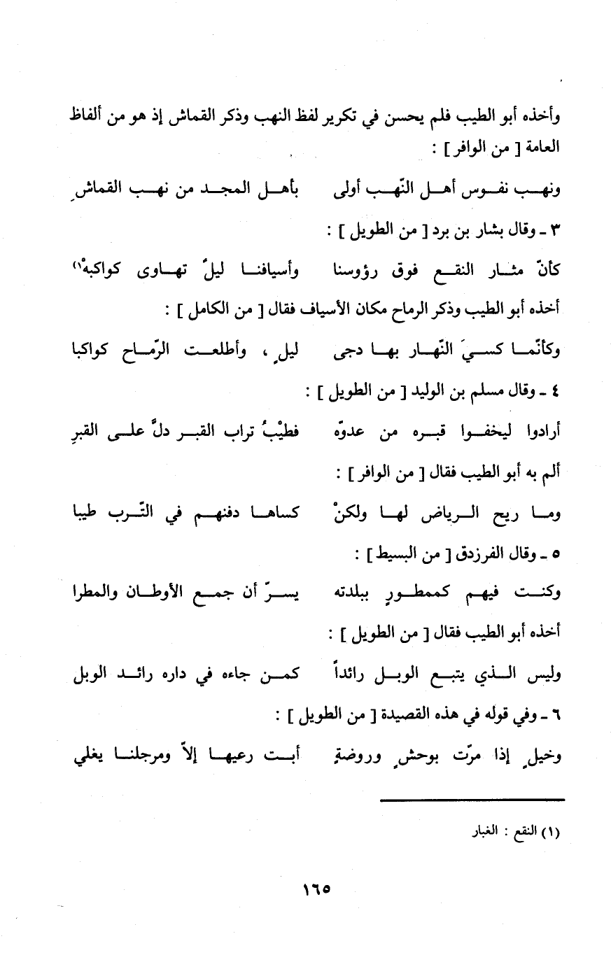 وَأَخذه أَبُو الطّيب فَلم يحسن فِي تَكْرِير لفظ النهب وَذكر القماش إِذْ هُوَ من أَلْفَاظ الْعَامَّة