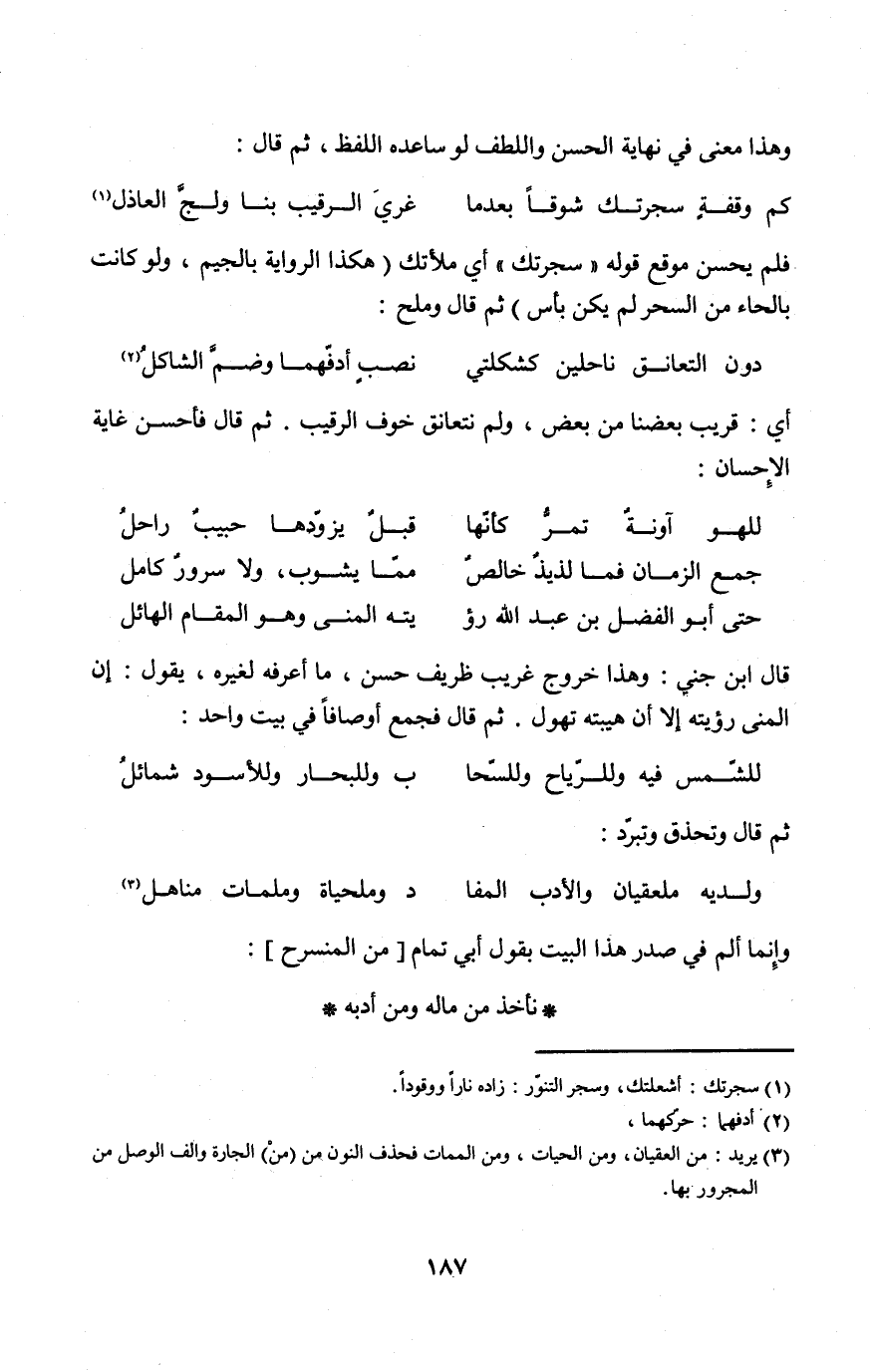 (كم وَقْفَة سجرتك شوقا بَعْدَمَا ... غري الرَّقِيب بِنَا ولج العاذل)