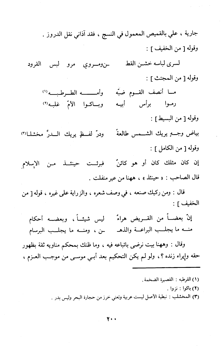 (لسرى لِبَاسه خشن الْقطن ... ومروي مرو لبس القرود) // من الْخَفِيف //