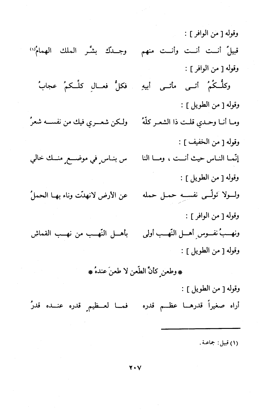 (وَنهب نفوس أهل النهب أولى ... بِأَهْل النهب من نهب القماش) // من الوافر //