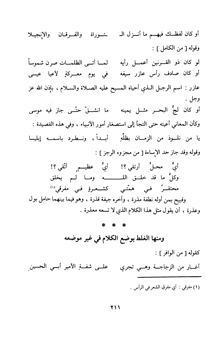(أَو كَانَ لفظك فيهم مَا أنزل التَّوْرَاة ... وَالْفرْقَان والإنجيلا) // من الْكَامِل //