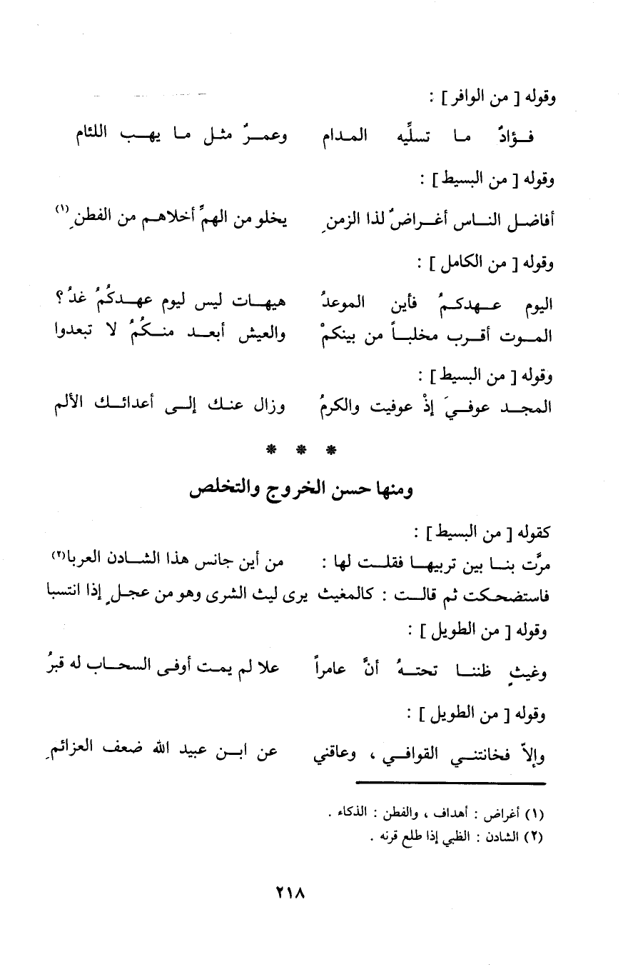 (أفاضل النَّاس أغراض لذا الزَّمن ... يَخْلُو من الْهم أخلاهم من الفطن) // من الْبَسِيط //