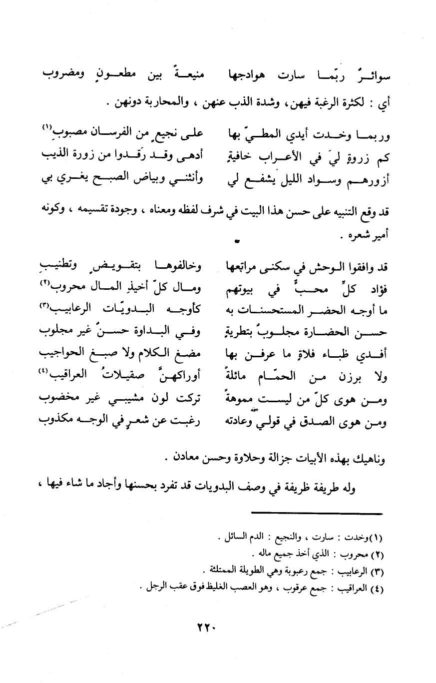 وَله طريفة ظريفة فِي وصف البدويات قد تفرد بحسنها وأجاد مَا شَاءَ فِيهَا