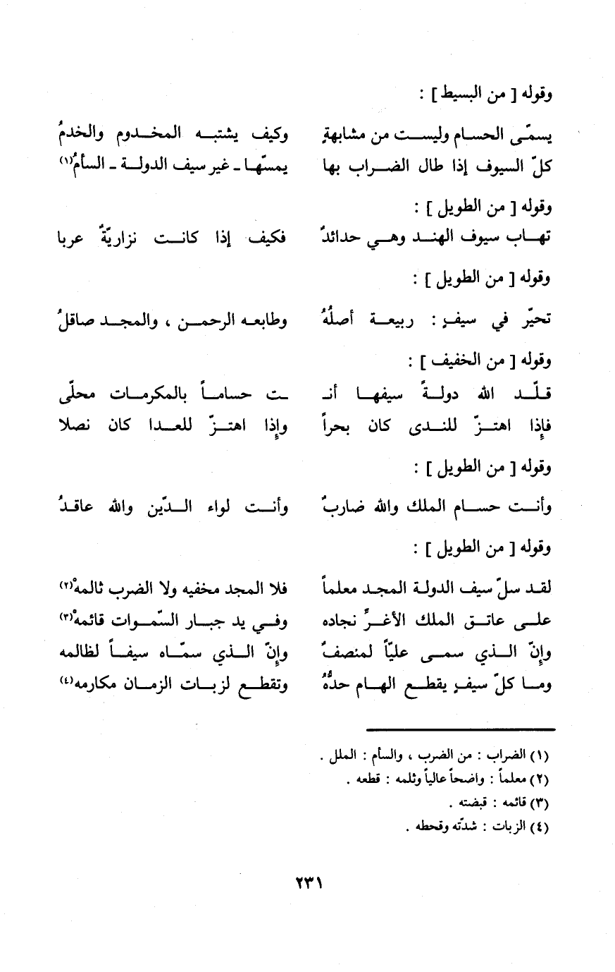 (يُسمى الحسام وَلَيْسَت من مشابهة ... وَكَيف يشْتَبه المخدوم والخدم)
