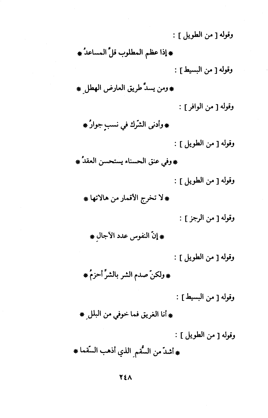 (إِذا عظم الْمَطْلُوب قل المساعد ... ) // من الطَّوِيل //
