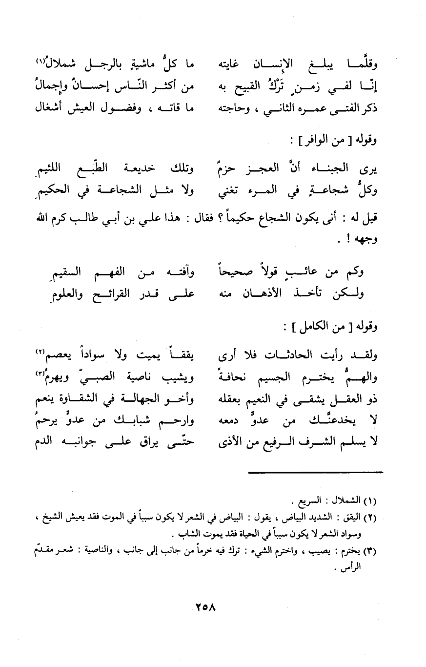 (وكل شجاعة فِي الْمَرْء تغني ... وَلَا مثل الشجَاعَة فِي الْحَكِيم) // من الوافر //