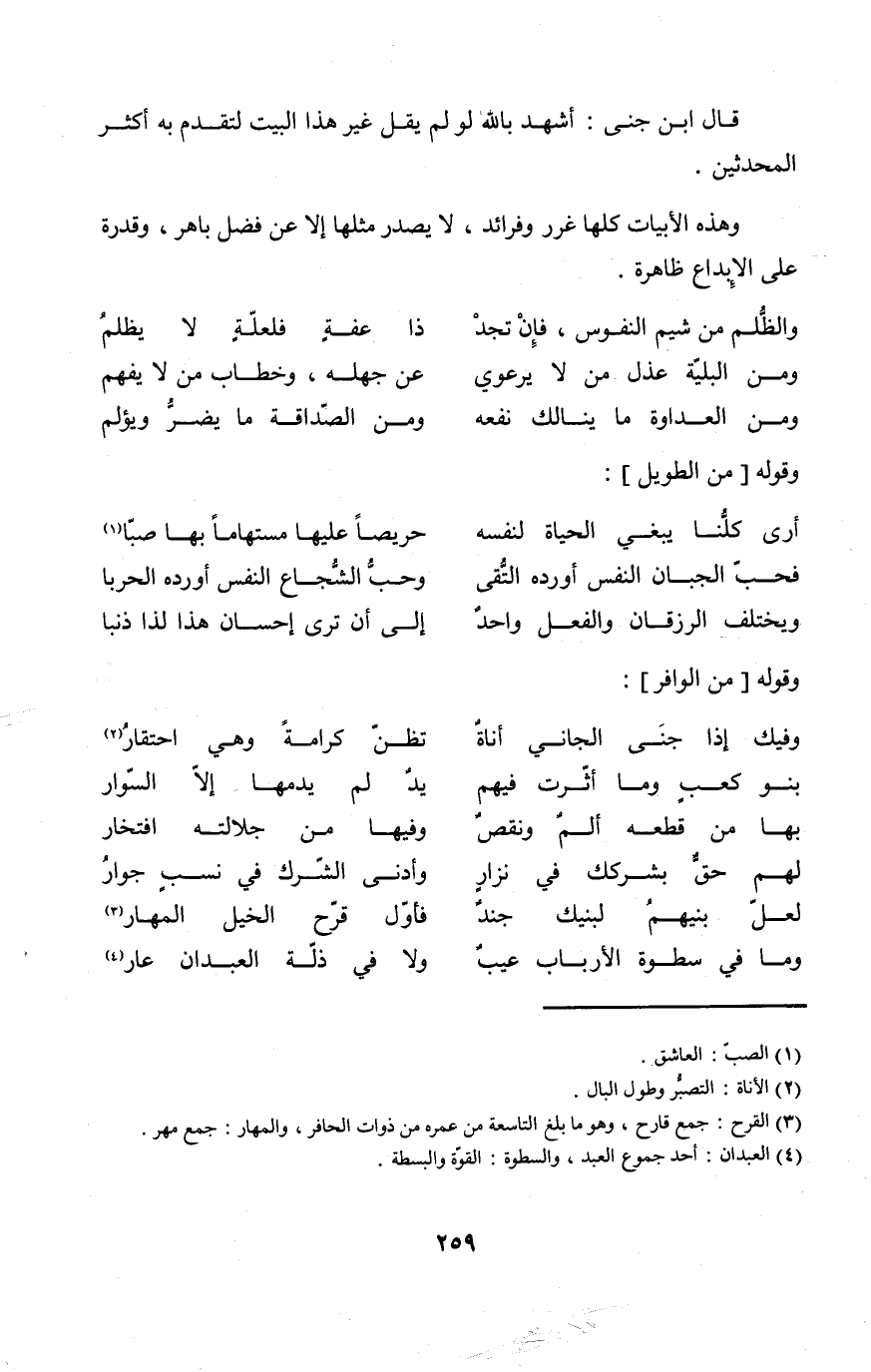 قَالَ ابْن جني أشهد بِاللَّه لَو لم يقل غير هَذَا الْبَيْت لتقدم بِهِ أَكثر الْمُحدثين