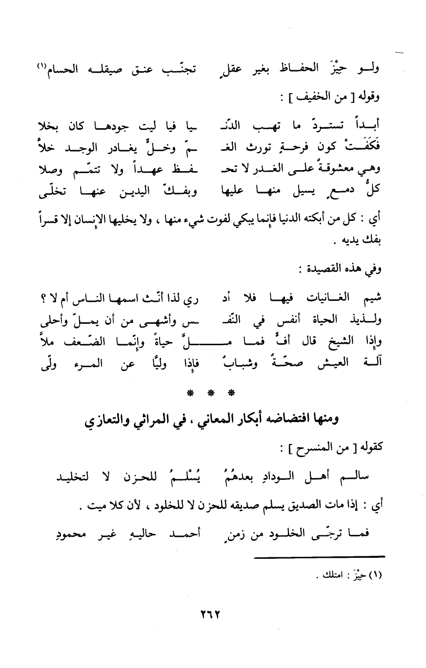 وَمِنْهَا افتضاضه أبكار الْمعَانِي فِي المراثي والتعازي