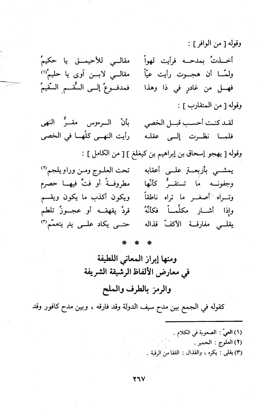 وَمِنْهَا إبراز الْمعَانِي اللطيفة فِي معَارض الْأَلْفَاظ الرشيقة الشَّرِيفَة وَالرَّمْز بالطرف وَالْملح