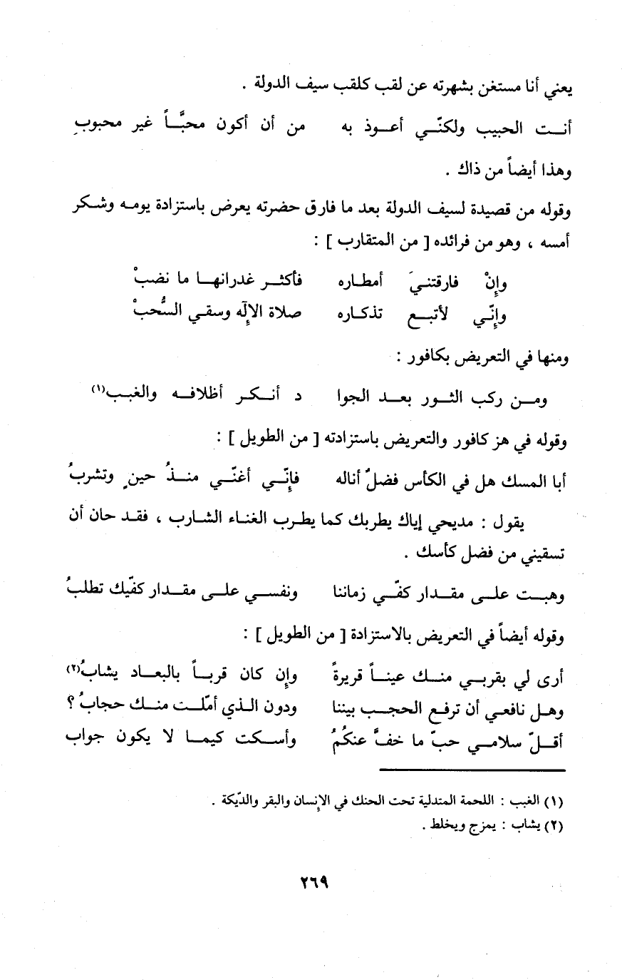 وَمِنْهَا فِي التَّعْرِيض بكافور