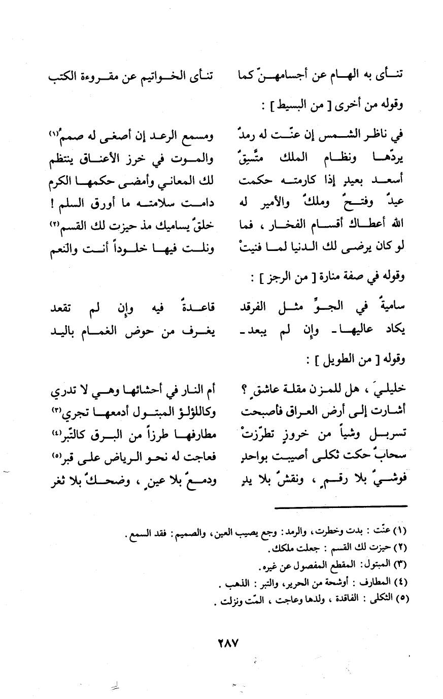 (تنأى بِهِ الْهَام عَن أجسامهن كَمَا ... تنأى الخواتيم عَن مقروءة الْكتب) // من الْبَسِيط //