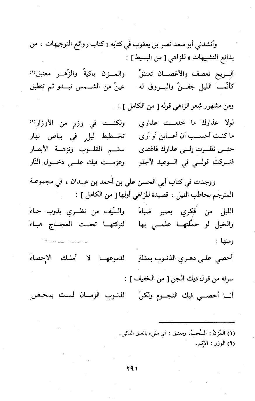 وَوجدت فِي كتاب أبي الْحسن عَليّ بن أَحْمد بن عَبْدَانِ فِي مَجْمُوعَة المترجم بحاطب اللَّيْل قصيدة للزاهي أَولهَا