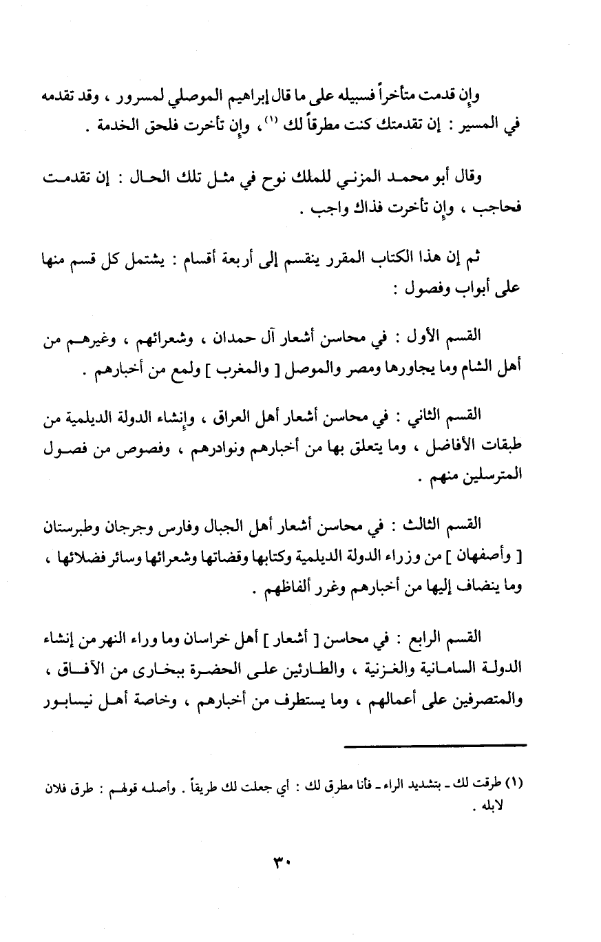 الْقسم الثَّانِي فِي محَاسِن أشعار أهل الْعرَاق وإنشاء الدولة الديلمية من طَبَقَات الأفاضل وَمَا يتَعَلَّق بهَا من أخبارهم ونوادرهم وفصوص من فُصُول المترسلين مِنْهُم