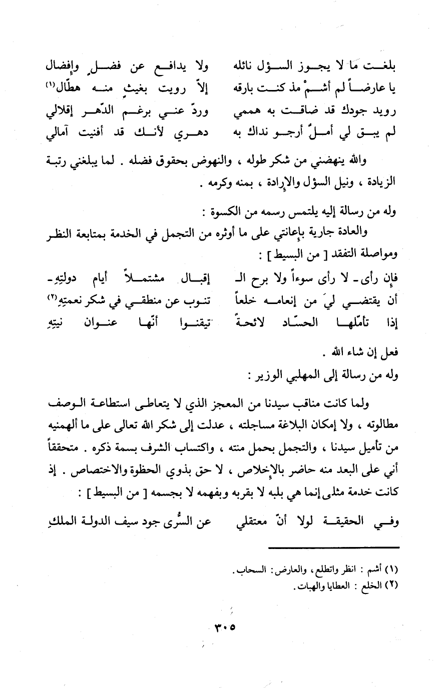 وَله من رِسَالَة إِلَيْهِ يلْتَمس رسمه من الْكسْوَة