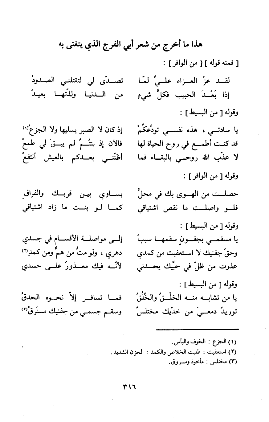 هَذَا مَا أخرج من شعر أبي الْفرج الَّذِي يتَغَنَّى بِهِ