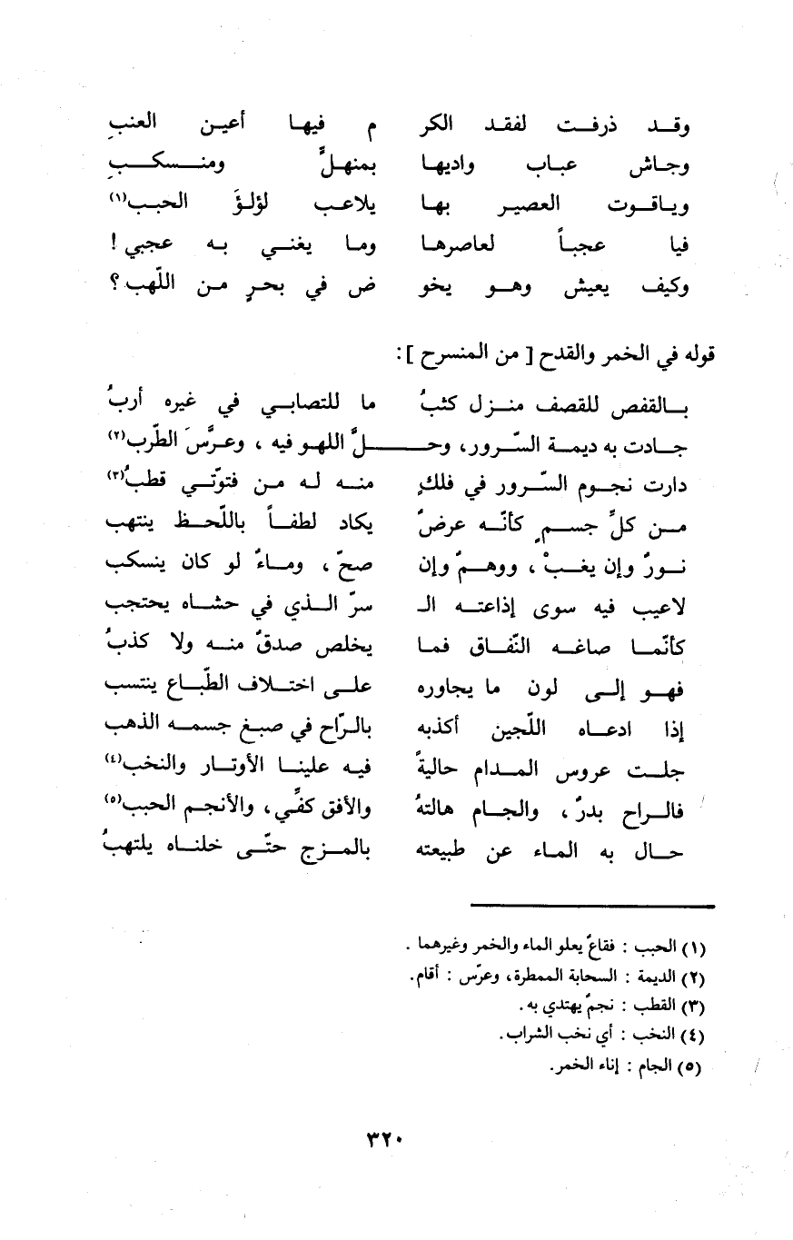 (فالراح بدر والجام هالته ... والأفق كفي والأنجم الحبب)
