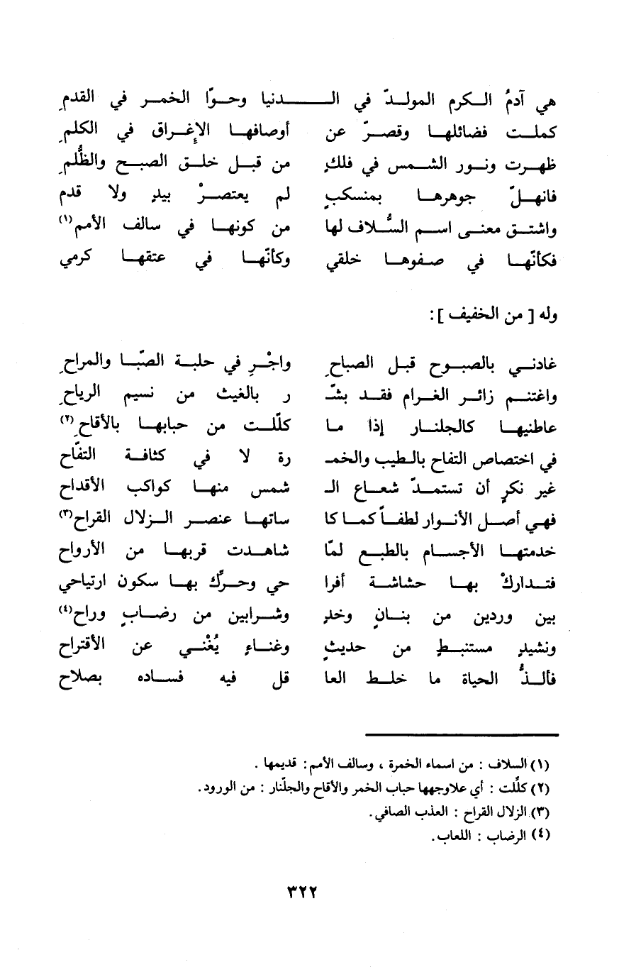 (هِيَ آدم الْكَرم المولد فِي الدُّنْيَا ... وحوا الْخمر فِي الْقدَم)
